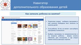 • В каталоге Навигатора родители выбирают занятия и записывают ребенка на обучение;