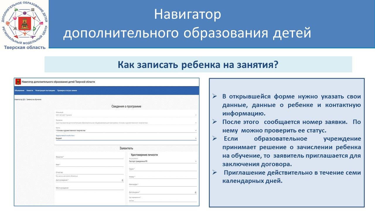 • Родители регистрируются на сайте Навигатора дополнительного образования НАВИГАТОР https://ndo.tvobr.ru
