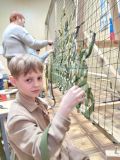 Ребята принесли свои рисунки и поздравления с праздником Великой Победы воинам СВО. Дети очень заинтересовались деятельностью волонтеров, они плели сети, резали спанбонд на ленты, маскировались в нашлемник и накидки, привязывали ленты на панцирь, познакомились с швейным цехом и технологией отлива окопных свечей. Все остались очень довольны! Юные помощники решили тоже помогать фронту и приходить плести сети.