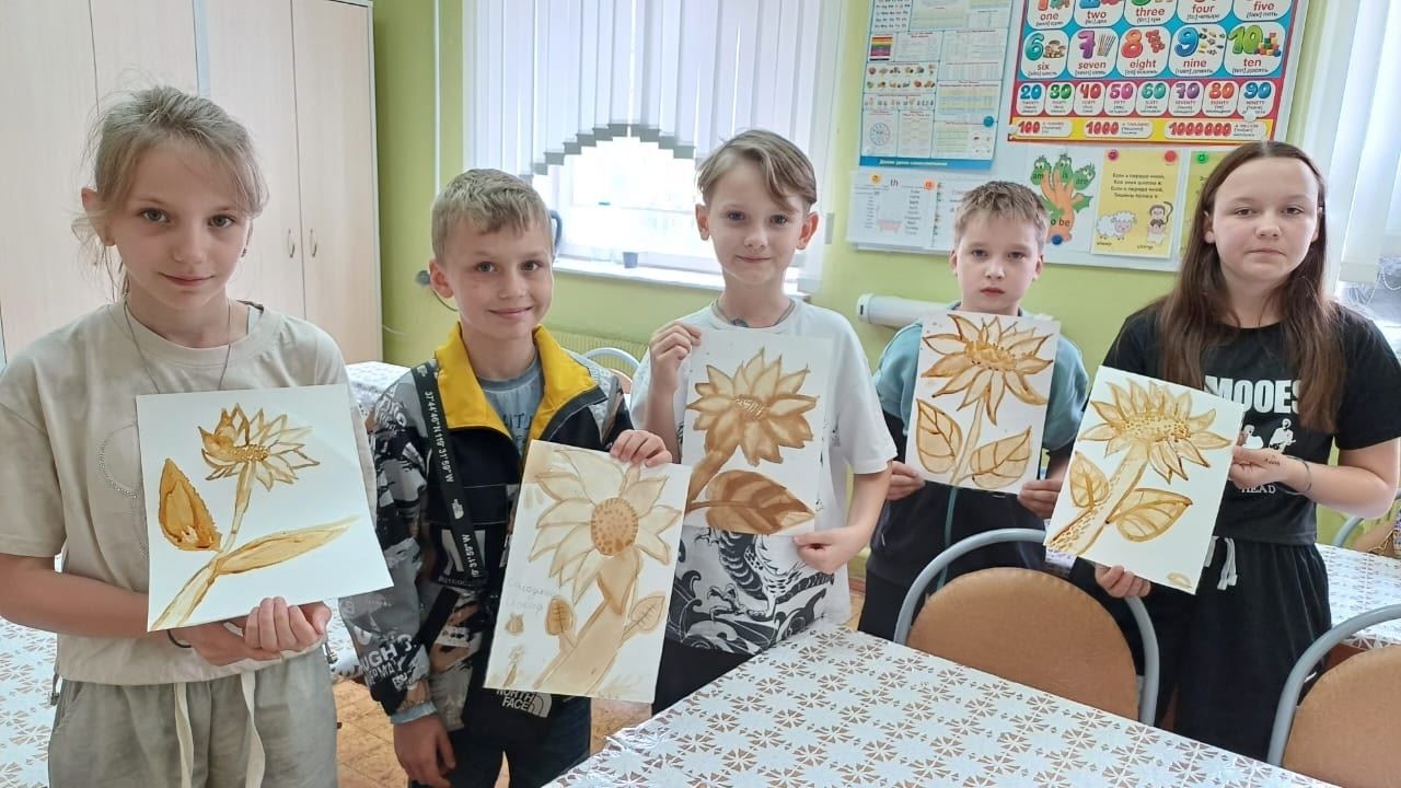 Ребята поделились по отряда и начали оформление отрядных уголков. Прошёл мастер-класс в технике рисования кофейным раствором, цель которого ознакомление с тоном и насыщенностью. Занятие провела для ребят Екатерина Николаевна Николаева. Ещё ребята учили песню, с которой выступят на концерте в Детской школе искусств. Так же были прогулки на свежем воздухе и игры.