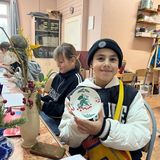 Ребята на занятии расписывали фаянсовые тарелочки в традициях хохломской росписи.